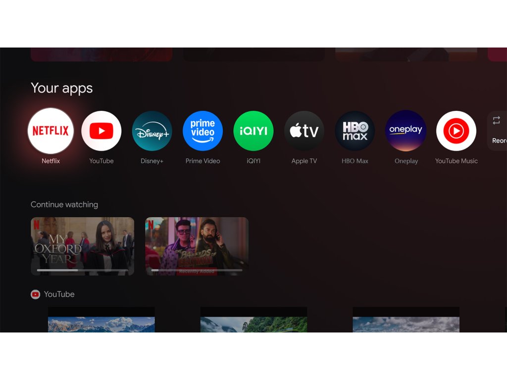 • podpora aplikací Netflix, Disney+, Prime video, Oneplay, HBO Max, Apple TV, Skylink Live TV, YouTube, Spotify