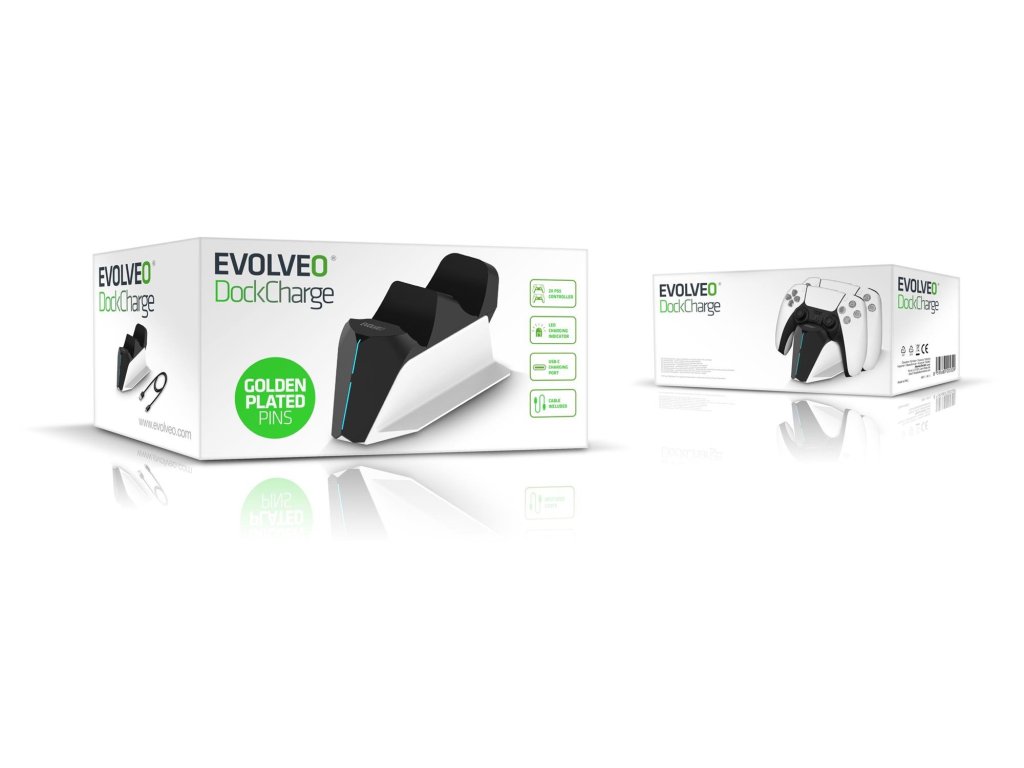 EVOLVEO DockCharge, nabíjecí základna a stojánek pro dva ovladače PS5