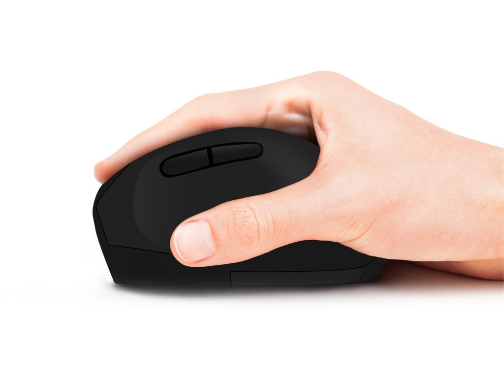 • Vertikální úchop myši eliminující syndrom karpálního tunelu (útlak středního nervu v karpálním tunelu)