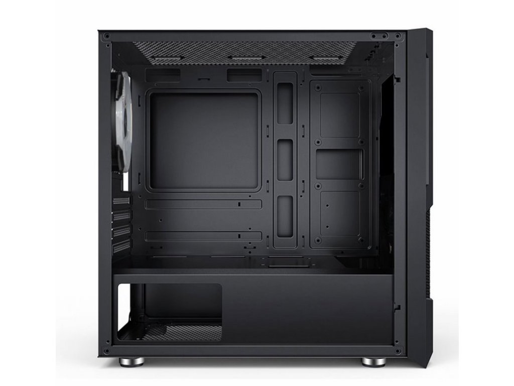 Herní mATX skříň s instalovanými RGB rainbow 120 mm ventilátoremy a bočnicí z temerovaného skla. Skříň je určená pro základní desky podporující platformu Intel i AMD. Mimo formátu mATX je kompatibilní i s formátem Mini ITX. Napájecí zdroj se umísťuje do dolní části skříně. Spodní mřížka je osazena vysouvacím prachovým filtrem. Ovládání ventilátorů je možné pomocí připojení k základní desce.