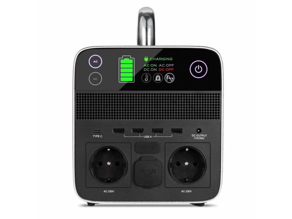 Nabíjecí stanice je kompaktní a snadno se přenáší. S její kapacitou 512 Wh a celkovým výstupním výkonem 700 W je možné nabíjet širokou škálu zařízení, jako jsou mobilní telefony, tablety, kamery, reproduktory a další zařízení se vstupem USB-A nebo USB-C. Navíc se dají připojit zařízení, která vyžadují střídavý proud (220V-240V), jako jsou drony, notebooky, televizory, ventilátory atd., pomocí zásuvek střídavého proudu.