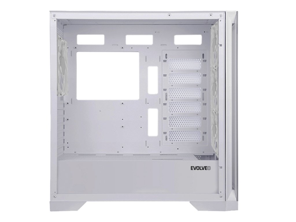 Počítačová skříň, midi tower, ATX, 4x ARGB, skleněný čelní + boční panel, bílá