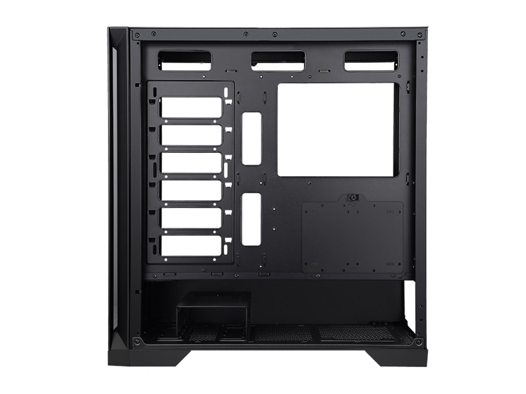 Vnitřní prostor této herní počítačové skříně je navržen tak velkoryse, že může být základem i pro ty nejambicióznější počítačové sestavy. Chladič procesoru může měřit až 164 mm na výšku. Grafická karta se sem vejde v délce až 390 mm. A pro ukládání dat je k dispozici místo pro 2 klasické pevné disky (3,5") a 3 moderní rychlá SSD úložiště (2,5"). Každá hardwarová součástka je zkrátka v této digitální pevnosti vítaným hostem a dostane se jí péče jako na císařském dvoře. Roli přitom nehraje ani její urozený původ – do skříně se dají vložit základní desky Intel i AMD, přičemž jsou podporovány formáty ATX, eATX (Extended ATX), mATX (Micro ATX) i mITX (mini ITX).