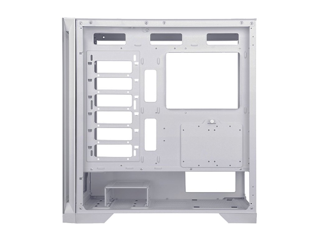 Levá strana PC skříně obsahuje bočnici z tvrzeného skla. Skříň je určená pro základní desky podporující platformu Intel i AMD. Mimo formátu ATX je kompatibilní i s formátem Micro ATXa Mini ITX. Napájecí zdroj se umísťuje do dolní části skříně. Spodní mřížka je osazena vysouvacím prachovým filtrem, horní prachový filtr je uchycený magnety a je odnímatelný. Ventilátory mají 4pin s MOLEX konektory a připojují se vzájemně na sebe bez nutnosti jakéhokoliv řadiče. Ovládání ventilátorů je možné pouze pomocí LED tlačítka na kontrolním panelu skříně.