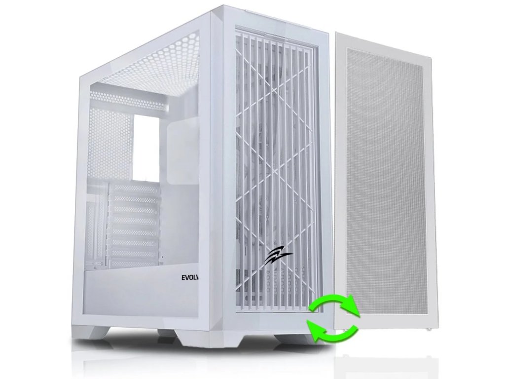 EVOLVEO Ptero Q2W, 2x čelní panel: sklo/mřížka, case ATX, bílá