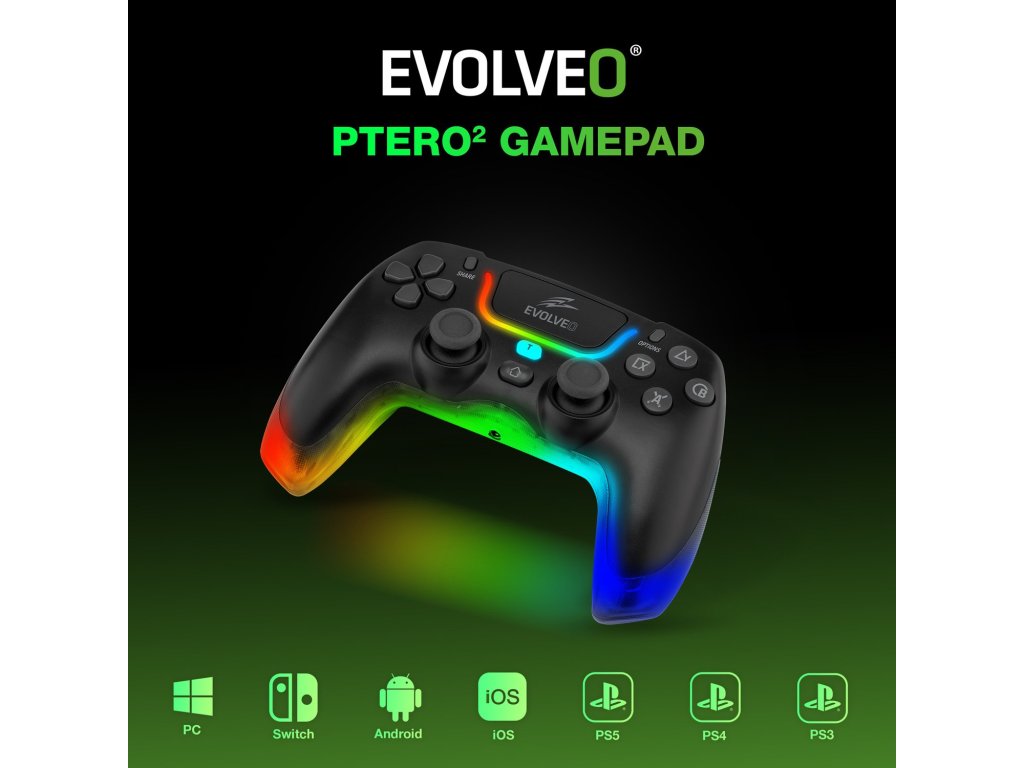 Chcete si podmanit svět videoher a mít osudy virtuálních hrdinů pevně ve svých rukou? V tom případě je tady EVOLVEO Ptero2 právě pro vás. Tento gamepad je jako švýcarský nůž pro hráče. V jednom kompaktním celku totiž spojuje výhody několika zařízení. Navíc může fungovat bezdrátově i s kabelem. A rozumí si s celou řadou platforem, od PC přes mobily až po PlayStation.