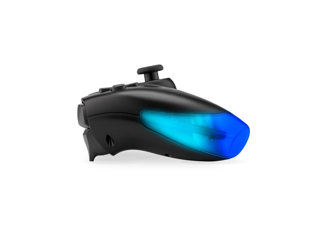 Ovládání světelných efektů máte doslova pod palcem zásluhou separátního tlačítka na spodní straně gamepadu. Kdyby vás podsvícení jakkoliv rušilo, samozřejmě ho můžete i úplně vypnout.