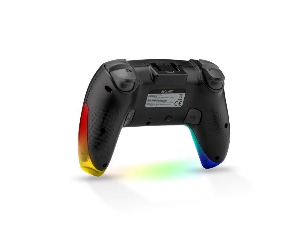 Pokud jde o energii, EVOLVEO Ptero2 pracuje s 1000mAh baterií, jejíž jedno nabití stačí až na 12 hodin provozu. Nabíjení (přes USB-C port na zadní straně gamepadu) trvá přibližně 4 hodiny, ale není třeba na nic čekat – hrát můžete i během dobíjení. Metr dlouhý nabíjecí kabel je součástí balení.