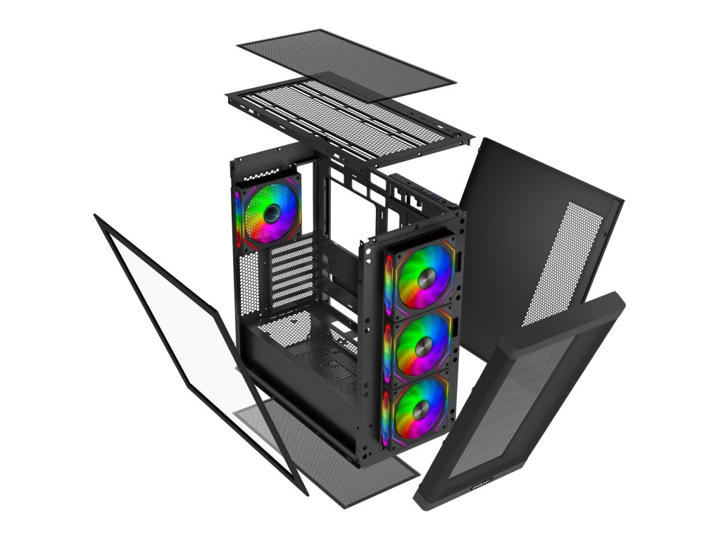 • Předinstalované ventilátory ve skříni: 1x ARGB master, 3x ARGB slave