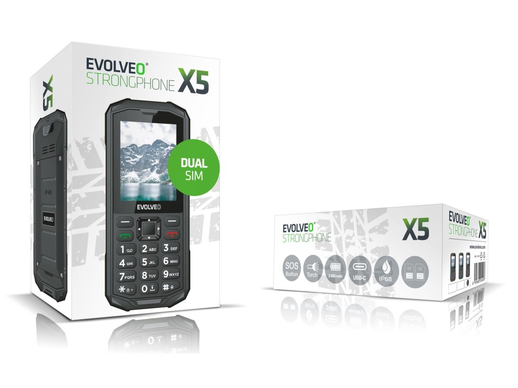EVOLVEO StrongPhone X5, vodotěsný odolný Dual SIM telefon, černo-šedá