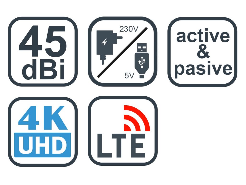 Elegantní pokojová anténa pro příjem digitální i analogové TV. Zesilovač antény lze napájet díky USB kabelu dvěma způsoby. Napájení pomocí adaptéru 230V a dále napájení z USB konektoru. Druhý způsob ocení uživatel, který chce sledovat TV např. na NB pomocí USB tuneru. Anténu lze přilepit sadou 3M oboustranných pásek na zeď, nábytek, nebo umístit do podstavce.