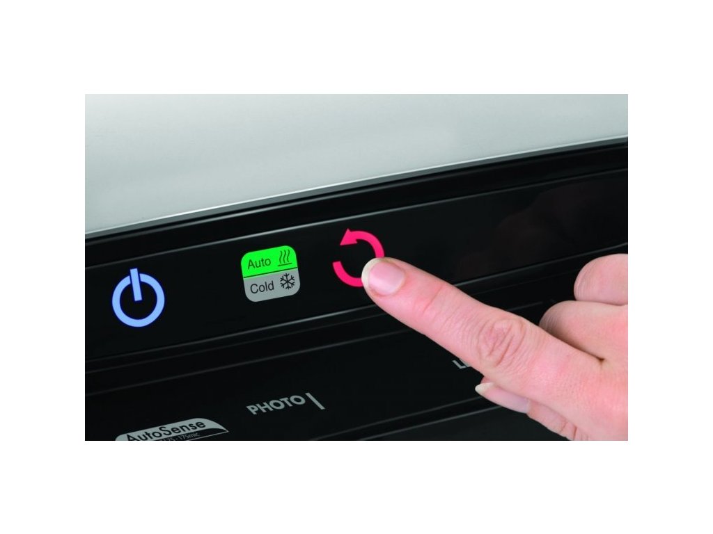 Intuitivní LED-panel: tlačítko zapnutí, možnost přepnutí do režimu pro laminaci za studena, a také zpětný chod.