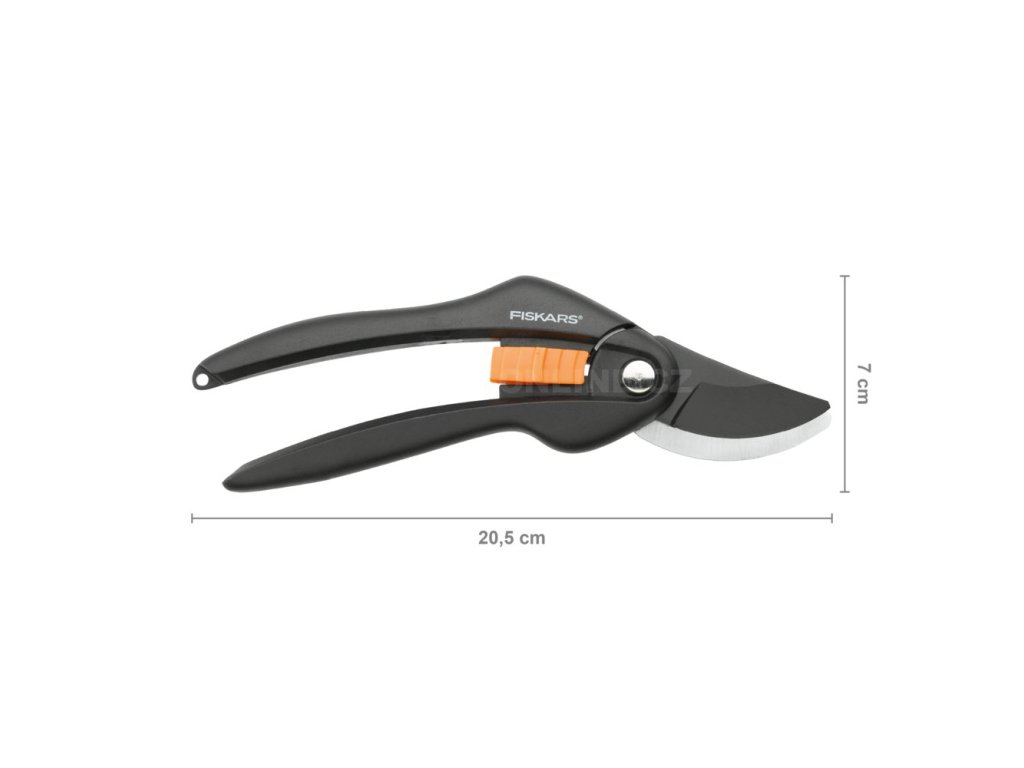 zahradní dvoučepelové nůžky • vhodné ke střihu čerstvých větví • pohodlně vytvarovaná masivní držadla • horní čepel je potažena kluznou vrstvou PTFE pro snížení tření • pro praváky i leváky • otvor pro zápěstní řemínek