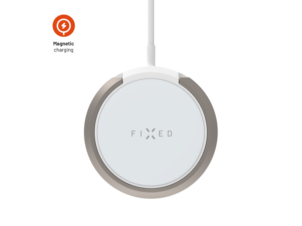 Bezdrátová nabíječka FIXED MagPad s podporou uchycení MagSafe a stojánkem, 15W, bílá