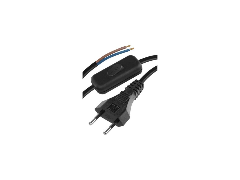 Flexo šňůra PVC 2× 0,75mm2 s vypínačem, 3m, černá