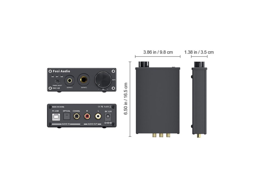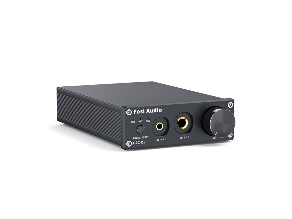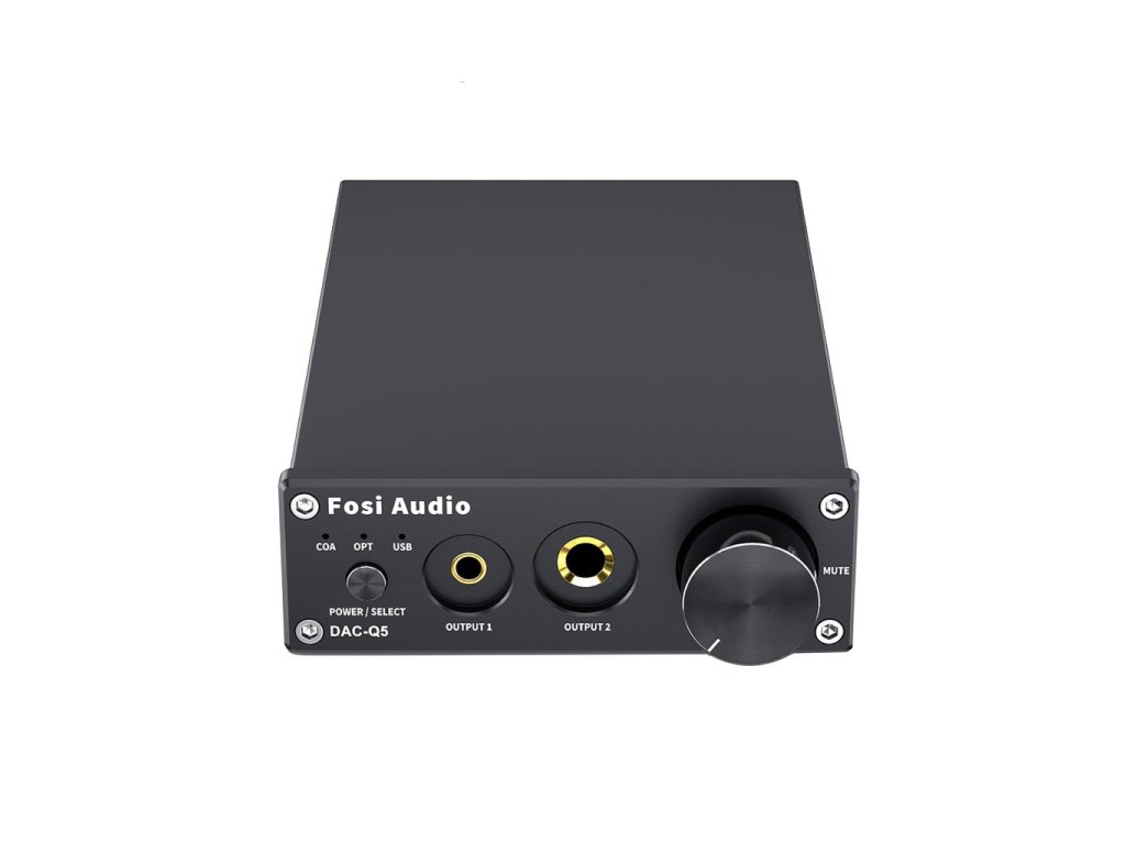 Fosi Audio Q5 je stolní D/A převodník a sluchátkový zesilovač se dvěma sluchátkovými výstupy 3,5 mm a 6,35 mm. Převodník dokáže pracovat v rozlišení až 24Bit /192kHz. Převod signálu zajišťuje čip ESS9018K2M společnosti ESS Technology. Q5 snadno propojíte pomocí USB-B s vaším PC, nebo Macem. Bez nutnosti instalace jakéhokoli softwaru ho můžete okamžitě začít používat. Jedinou výjimkou je systém Windows 7, pro který budete potřebovat nainstalovat ovladače.
