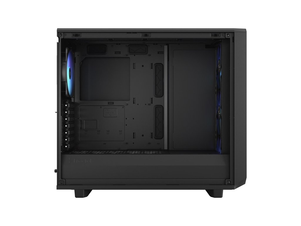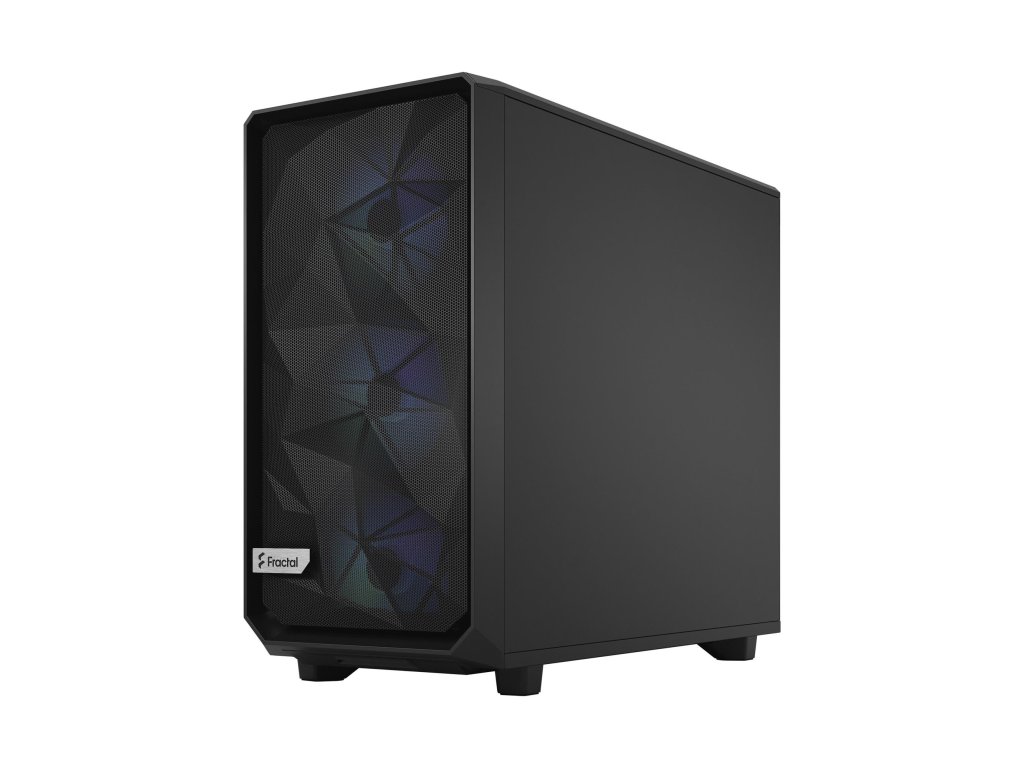 Meshify 2 RGB je vysoce výkonná skříň s odvážným estetickým vzhledem inspirovaným technologií stealth. Její nápadný exteriér je vybaven zapuštěným tvrzeným sklem bez šroubů, plně odnímatelnou horní částí poskytující vynikající přístup do interiéru a přední částí s USB-C, výklopným síťovým panelem a odnímatelným nylonovým filtrem. Flexibilní dvouvrstvý interiér podporuje velká úložná pole a sestavy s více chladiči, díky nimž je chlazení hračkou.