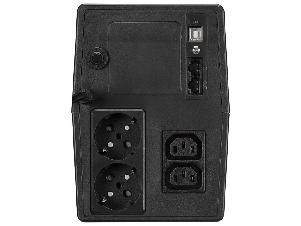 záložní zdroj, UPS, kapacita 1000VA, 600W, funkce studeného startu, dobíjení i ve vypnutém stavu, stabilizace napětí, ochrany proti přetížení, vybití a přebíjení, USB port, bateriový mód, 2x Schuko zásuvka