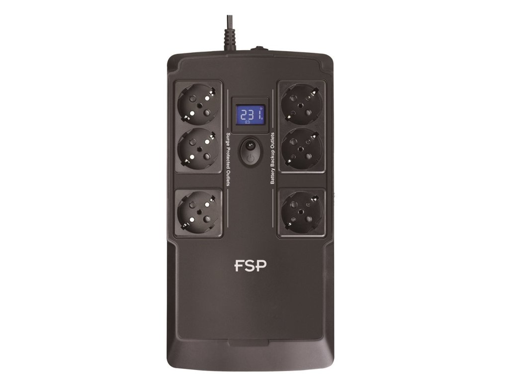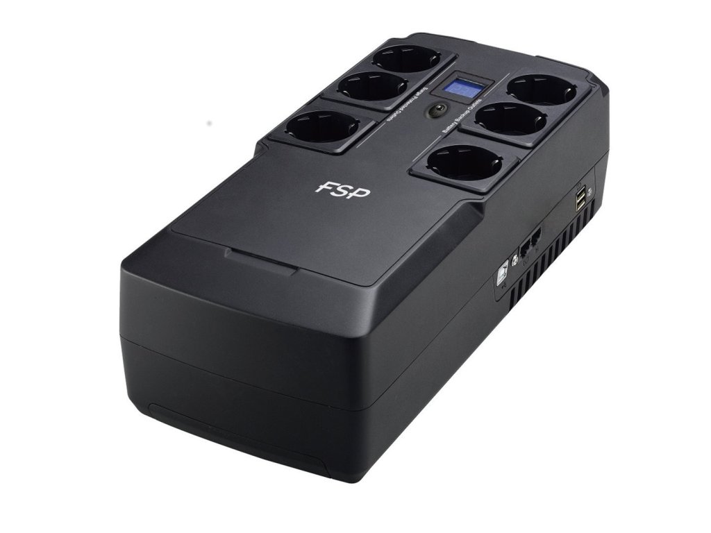 záložní zdroj, UPS, kapacita 800VA/480W, off-line technologie, simulovaná sinusoida, funkce studeného startu, 6x Schuko zásuvka, 2x napájecí USB porty, ochrana RJ45, LCD displej