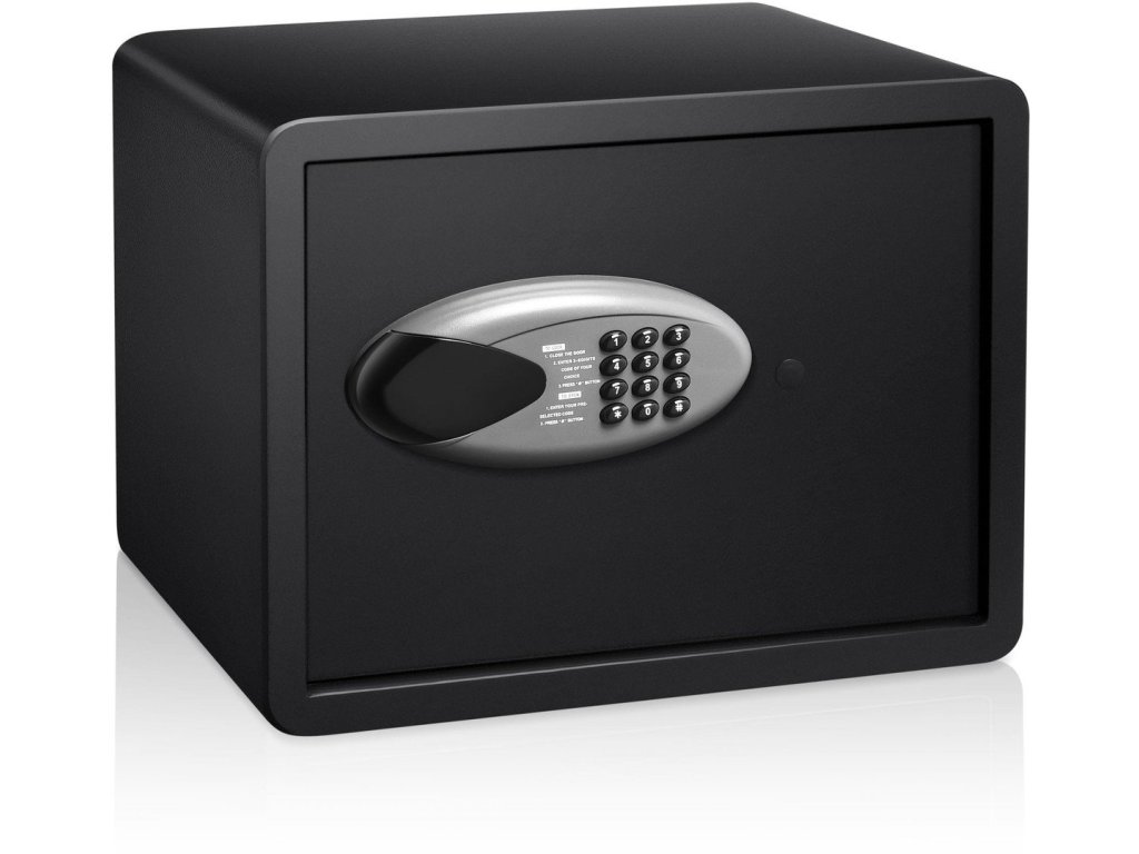 Pro bezpečné uzavření je trezor opatřen digitálním zámkem s číselnou kombinací a informačním LED displejem. S pomocí přiloženého návodu si snadno nastavíte vlastní 6místný kód. Na digitálním zámku trezoru lze také nastavit datum a čas. Na displeji lze poté v případě potřeby zkontrolovat až 105 záznamů o otevření trezoru. Pro nouzové otevření trezoru jsou kromě digitálního zámku dvířka vybavena také mechanickým zámkem na klíč. V balení najdete 2 klíče pro případ, že byste jeden z klíčů ztratili, nebo chtěli umožnit přístup do trezoru další osobě.