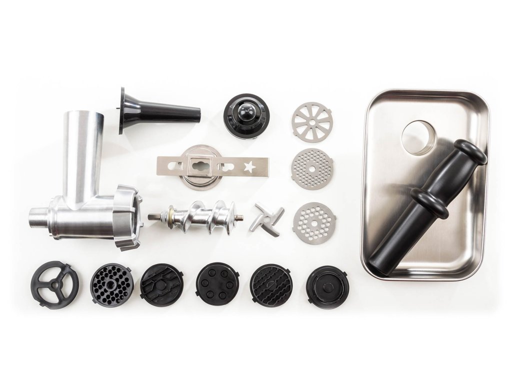 Mlýnek na maso obsahuje 3 velikosti mlecích destiček pro různou hrubost masa. Příprava sekané, karbanátků nebo třeba výborného tatarského bifteku je pro něj hračkou a pro vás radostí.