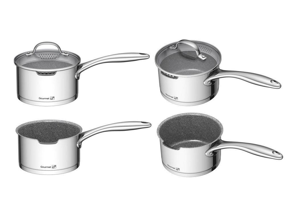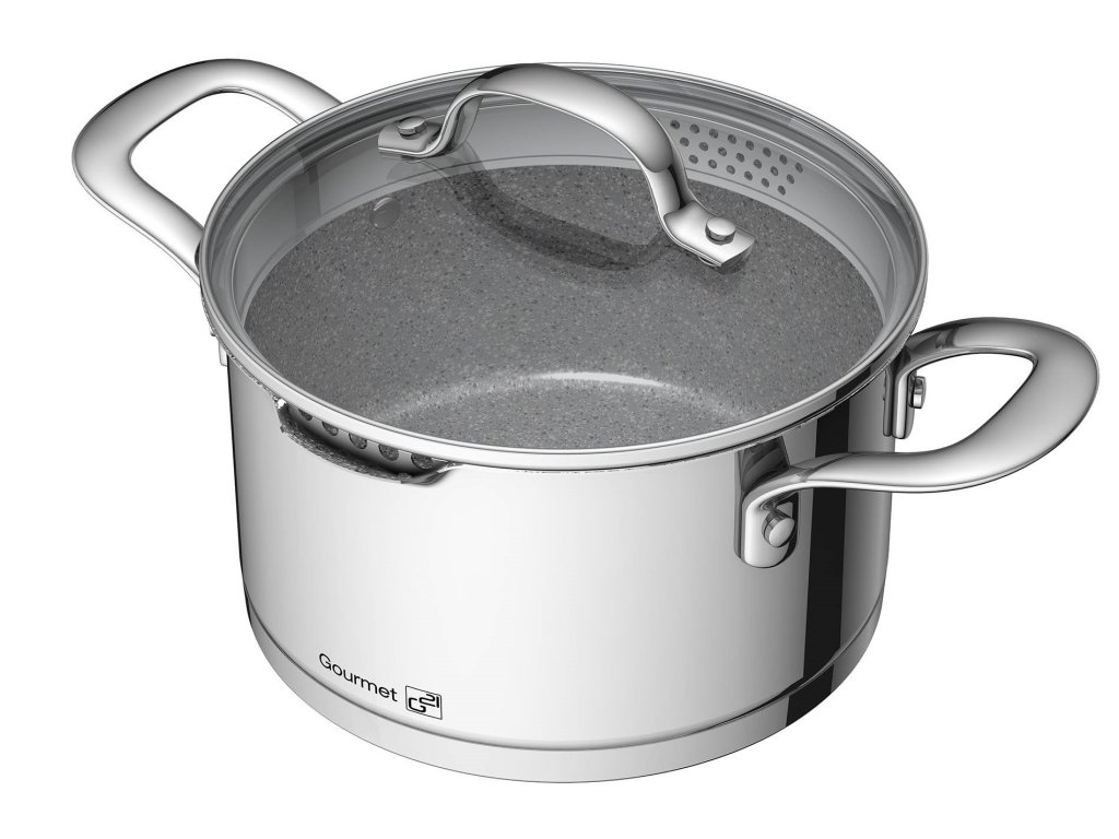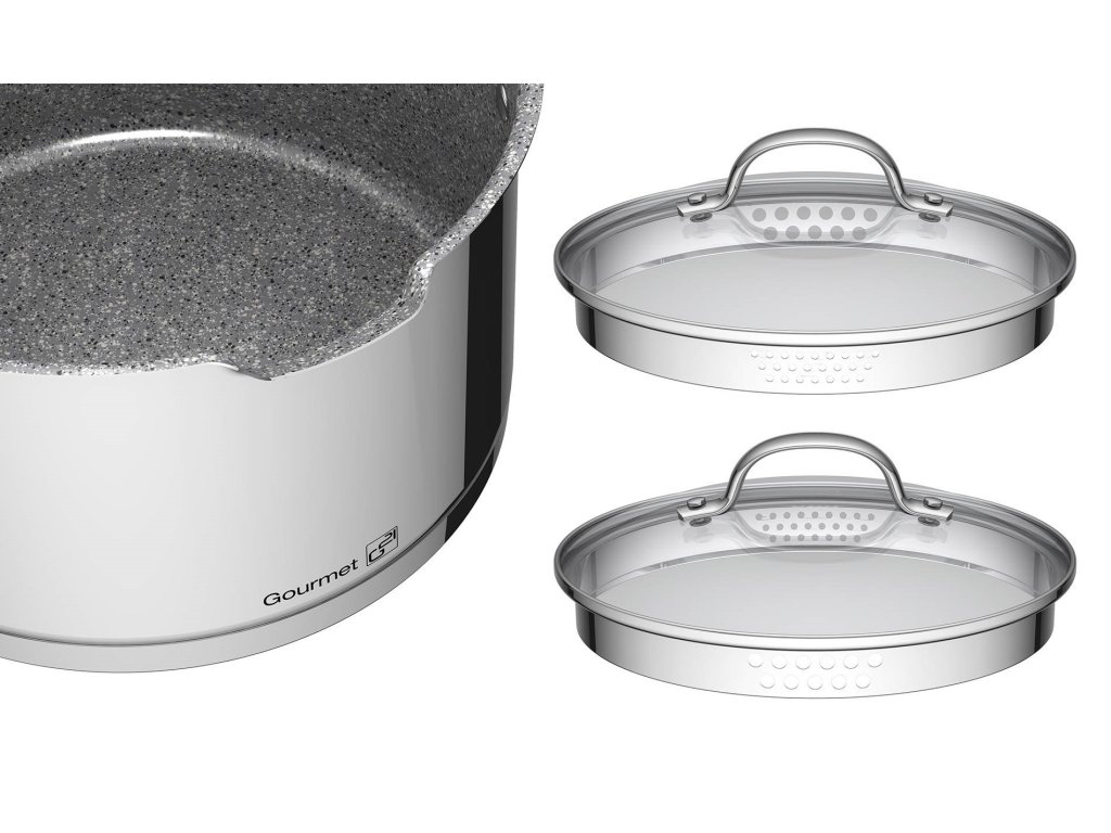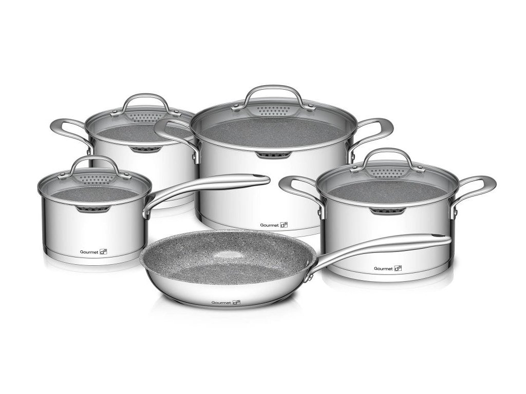 G21 Sada nádobí Gourmet Miracle s cedníkem, 9 dílů, nerez/greblon