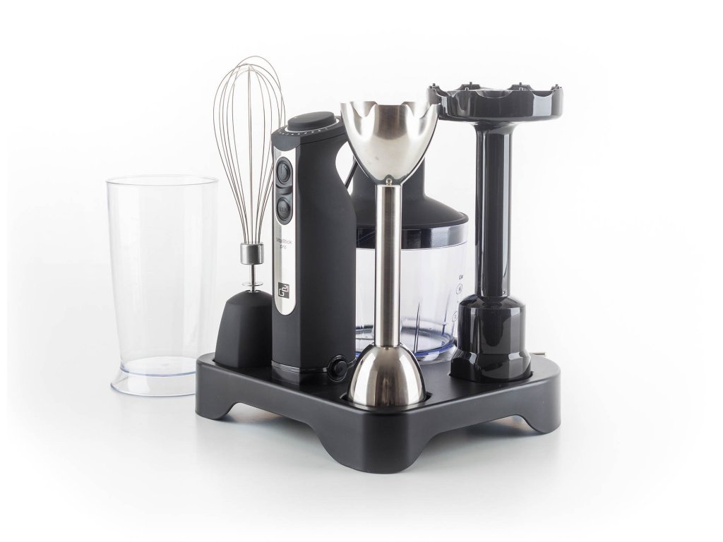 tyčový mixér, příkon 1000W, 13 úrovní rychlosti, 3D Quattro blade systém, odnímatelný nástavec, ergonomická rukojeť, 600ml mixovací nádoba, 500ml sekáček, nerezová šlehací metla, stojánek pro přísl., černý