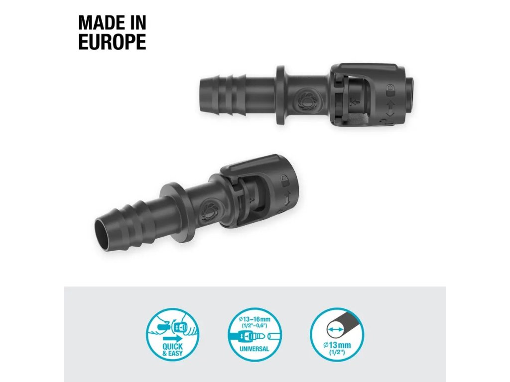 GARDENA univerzální spojka 1/2" umožňuje snadný přechod na Micro-Drip-System a připojení různých trubek. Flexibilní, snadno instalovatelná a udržitelná.