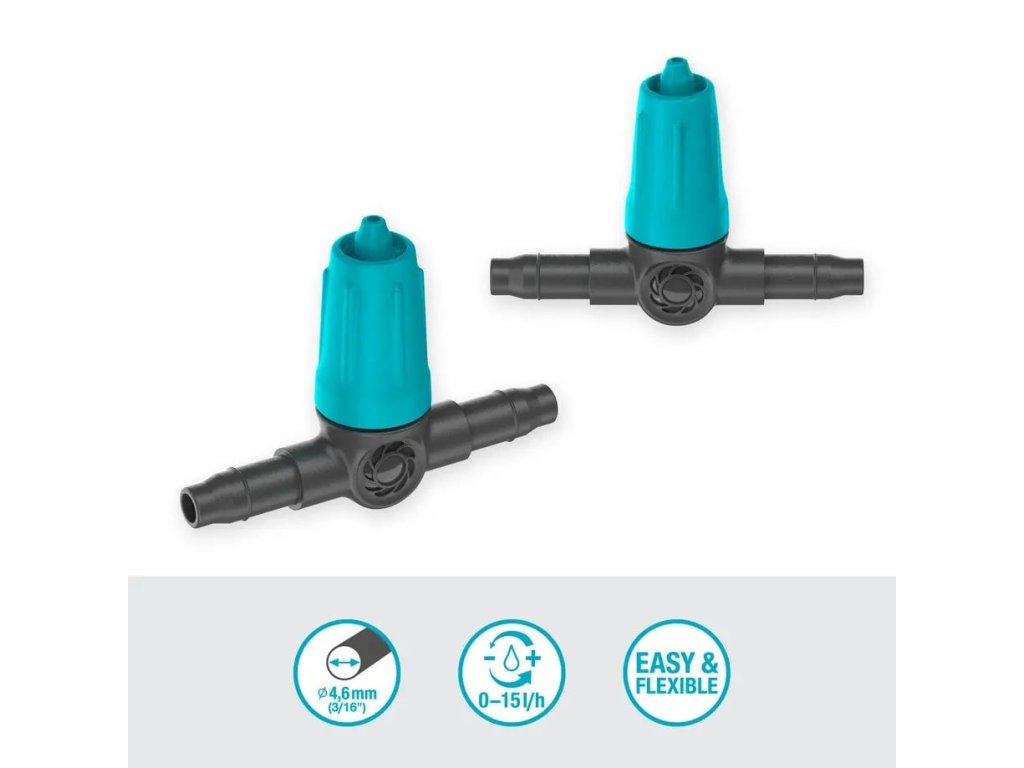 Lze jej použít ve spojení s 4,6 mm rozdělovací trubkou k optimálnímu zalévání řad rostlin v květináčích a záhonů s různými požadavky na vodu.