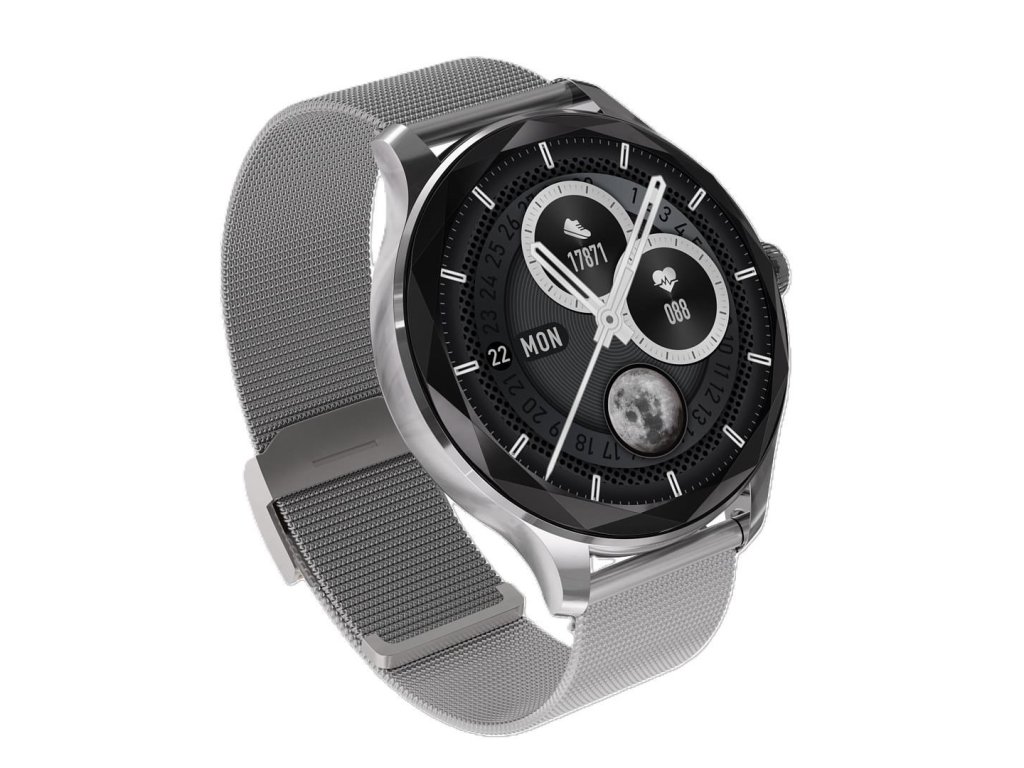 1,3" AMOLED displej • Bluetooth volání • Indukční nabíjení • Vodotěsnost IP67 • Tep, tlak, SpO2, spánek • Menstruační kalendář • 100+ sportů • Hlasový asistent • Kovový i silikonový řemínek • CZ/SK menu