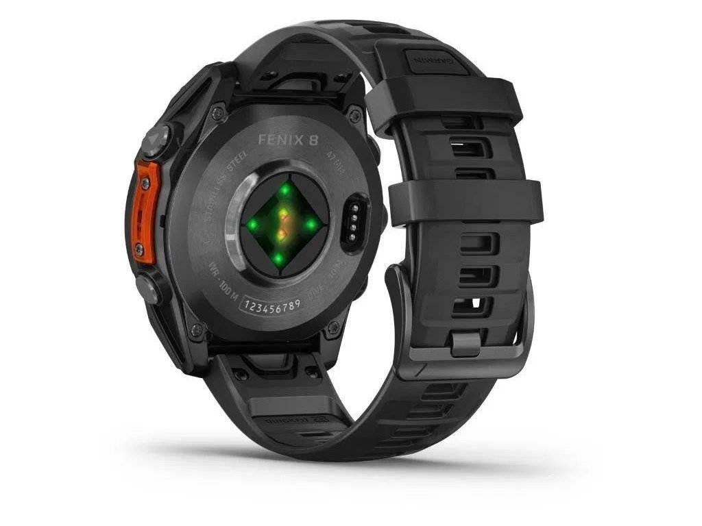 GArmin Fénix 8 - 1,4" AMOLED displej, unisex GPS hodinky, podpora NFC plateb přes Garmin Pay, Bluetooth, Wi-fi, volání při spárování s telefonem, měření tepu, saturace kyslíku v krvi, monitoring spánku, výdrž až 23 dní na jedno nabití.