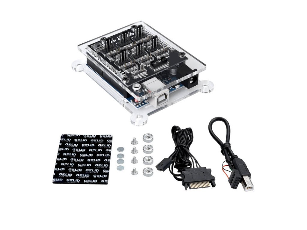 * V balení: 1x USB kabel, 1x Napájecí kabel SATA+PWM, 4x magnetický držák, 1x lepivá gelová podložka