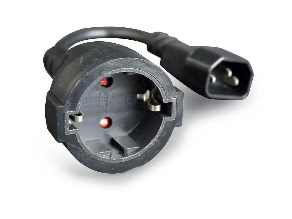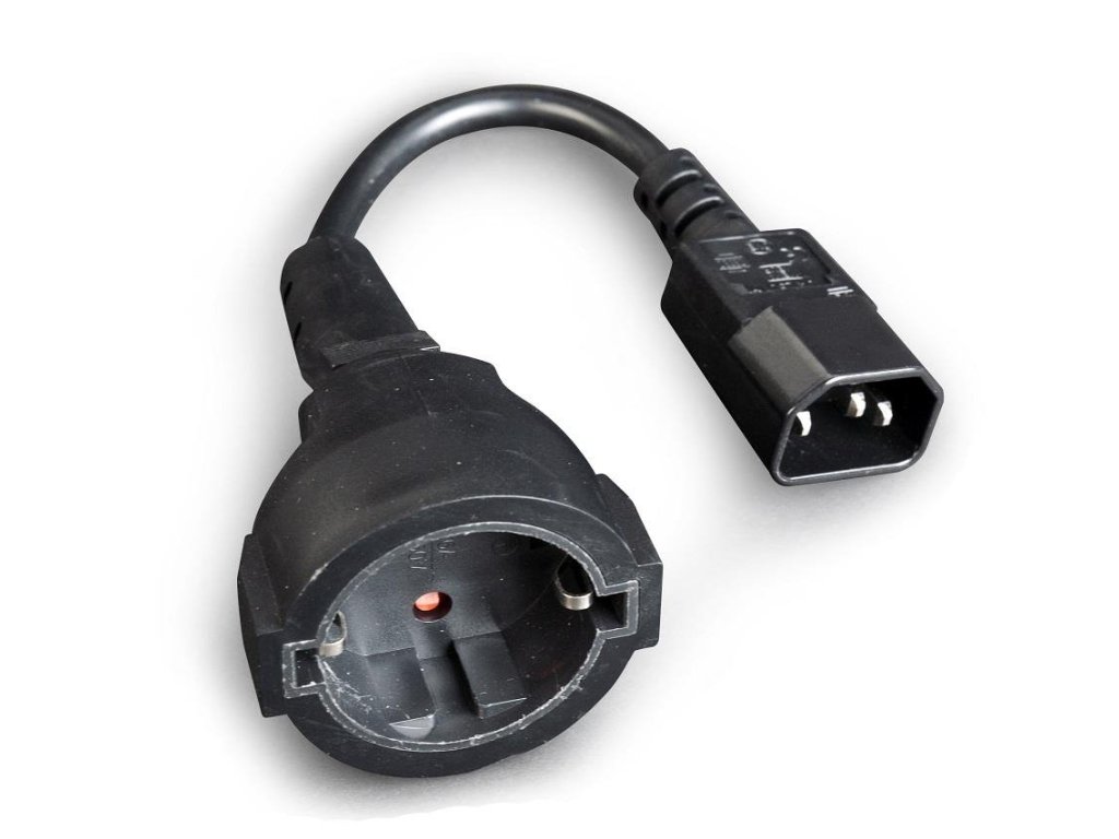 redukce, síťový kabel pro výstup UPS - redukce PC konektor (IEC) na běžnou zásuvku (schuko), délka 15cm