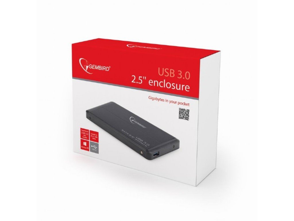 externí box pro 2.5" SATA HDD/SSD, konektor USB 3.0, materiál hliník, napájení přes USB sběrnici, USB kabel 50cm, rozměry 134x75x12mm