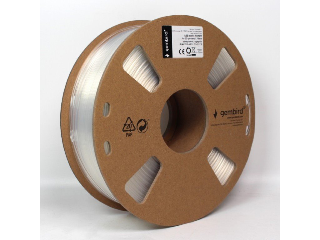 Gembird filament ABS 1.75mm 1kg, transparentní