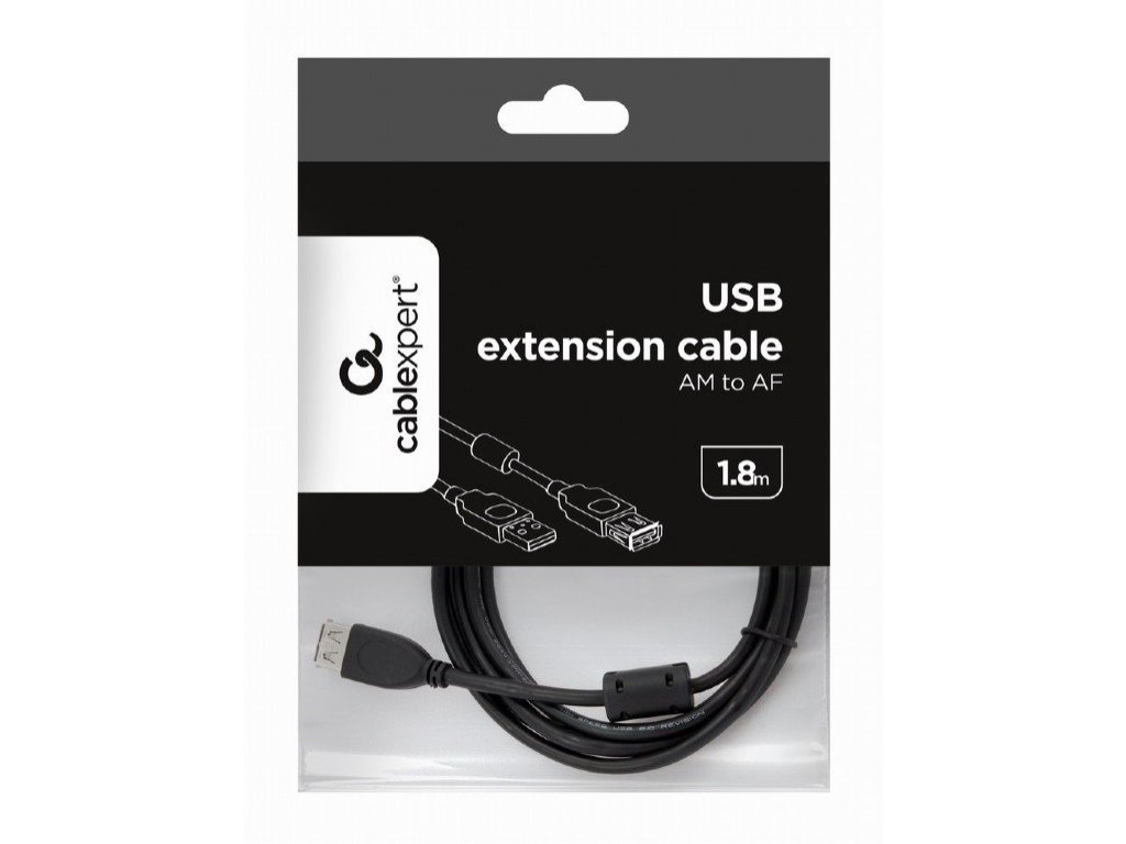 GEMBIRD Kabel USB 2.0 A-A prodlužovací 1,8m Premium (černý, ferit)