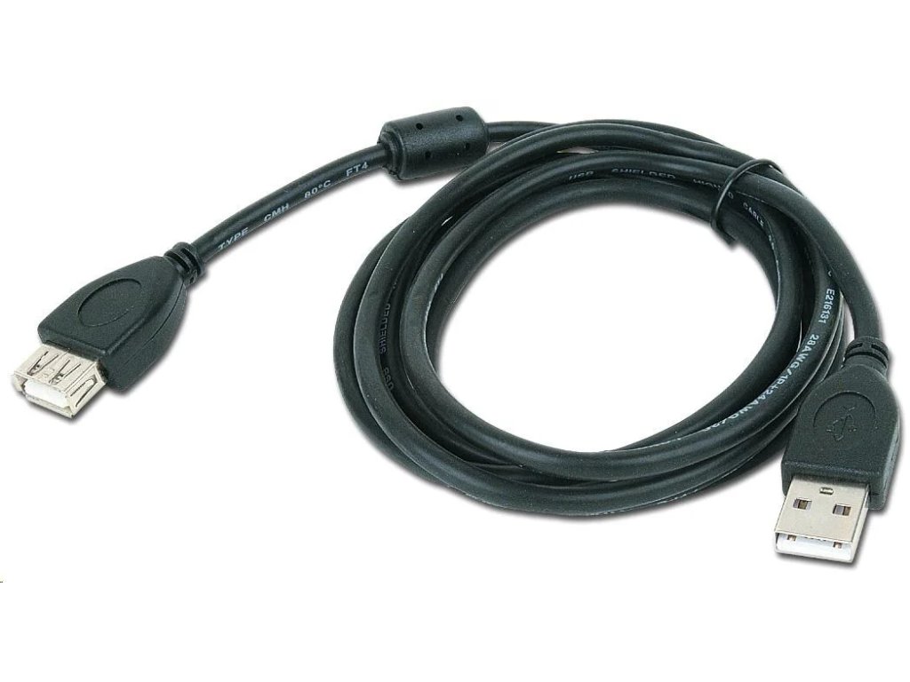 prodlužovací kabel USB 2.0 AM - AF, délka 1,8 m, s feritovým jádrem