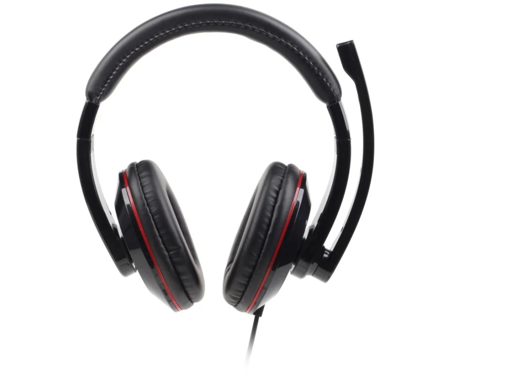 sluchátka s mikrofonem, ovládání hlasitosti a mikrofonu na kabelu, frekvenční rozsah 20Hz až 20kHz, citlivost 105dB, impedance 32 Ohmů, délka kabelu 1.8m, 2x jack 3.5mm, černá