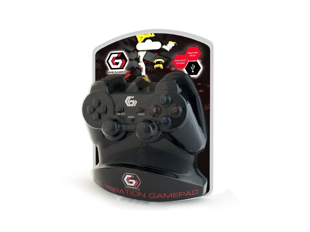 gamepad pro PC, USB 2.0, vibrační, 4-cestný D-pad, 2 páčky, 10 tlačítek, digitální i analogový režim, ergonomický design, kabel 1.8m