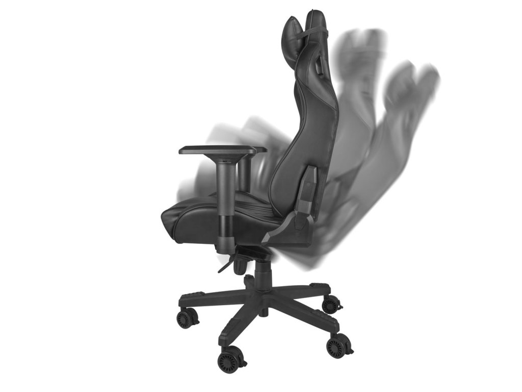 Černé čalounění s kvalitní PU kůže a vkusné prošití dávají křeslu sportovní charakter, což z něj dělá atraktivní a moderní doplněk ve vašem herním království.