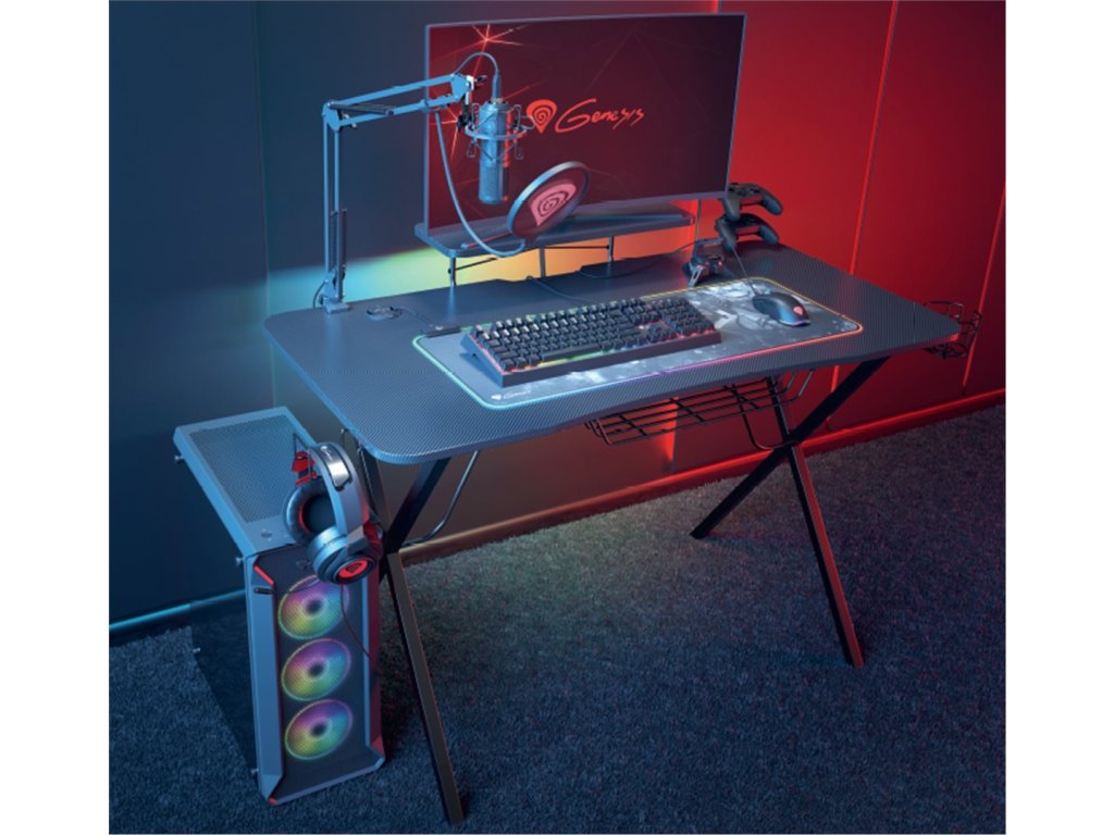 Genesis Holm 300 RGB je jedinečný stůl určený pro hráče her, který je vybaven množstvím dodatečných funkcí a praktických držáků, díky čemuž budete mít vaše příslušenství vždy po ruce. Navíc stůl obsahuje RGB podsvícení, které dává najevo, že se jedná o koutek skutečného hráče!