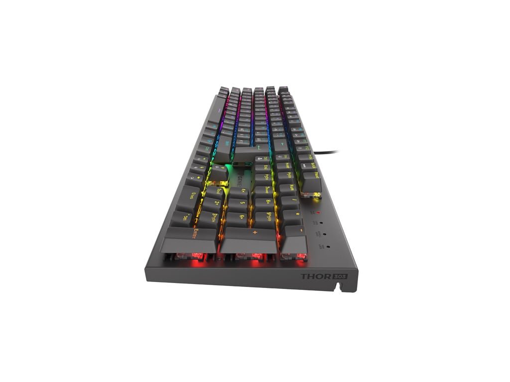 Genesis THOR 303 je mechanická herní klávesnice s výměnnými spínači Outemu Red s extrémně rychlou odezvou a životností až 50 milionů kliknutí. Odolné hliníkové šasi v kombinaci s plnohodnotným RGB podsvícením včetně PRISMO efektu zaručí odolnost konstrukce a efektní vzhled během každé herní relace.