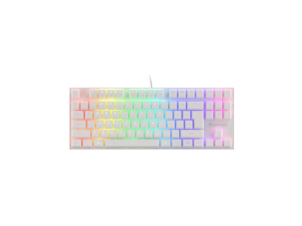 Drátová mechanická herní TKL (tenkeyless) klávesnice, s RGB podsvícením, spínače Outemu Brown, US rozložení kláves, software pro nastavení, bílá.