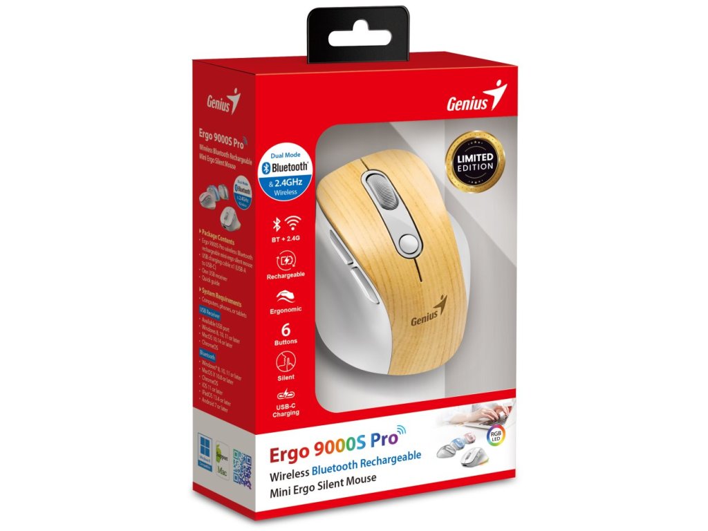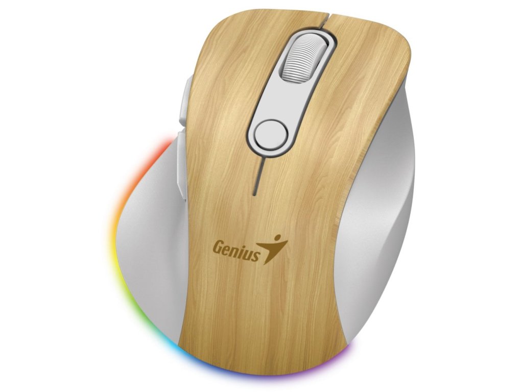 Ergonomická bezdrátová myš v kompaktním provedení disponuje optickým senzorem s nastavitelným rozlišením až 2400 DPI. Připojení k počítači je realizováno bezdrátově skrze Bluetooth nebo miniaturní USB přijímač a rozhraní 2,4 GHz. Myš se dokáže připojit až ke 3 zařízením zároveň, mezi nimi pak můžete přepínat stiskem jediného tlačítka (Dual BT režim + 2,4 GHz). USB přijímač lze pro snadné přenášení uschovat v těle myši. Napájení zajišťuje vestavěná dobíjecí baterie s kapacitou 500 mAh, kterou lze nabíjet pomocí USB-C portu. Potěší také stylové sedmibarevné podsvícení.