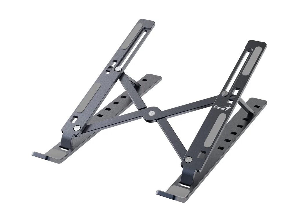 Podstavec pro notebook umožňuje nastavení úhlu sklonu a výšky v sedmi stupních. Pomáhá tak redukovat napětí zad i krku a udržovat správné držení těla. Díky široké základně je zaručena maximální stabilita. Otevřená konstrukce zajistí dostatečné proudění vzduchu a zabrání přehřívání notebooku. Podstavec lze navíc jednoduše složit a využít jej i na cestách, aniž by zabíral zbytečné místo.