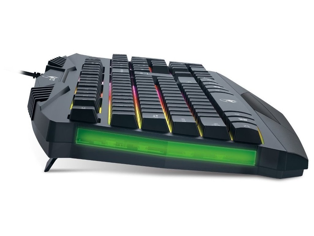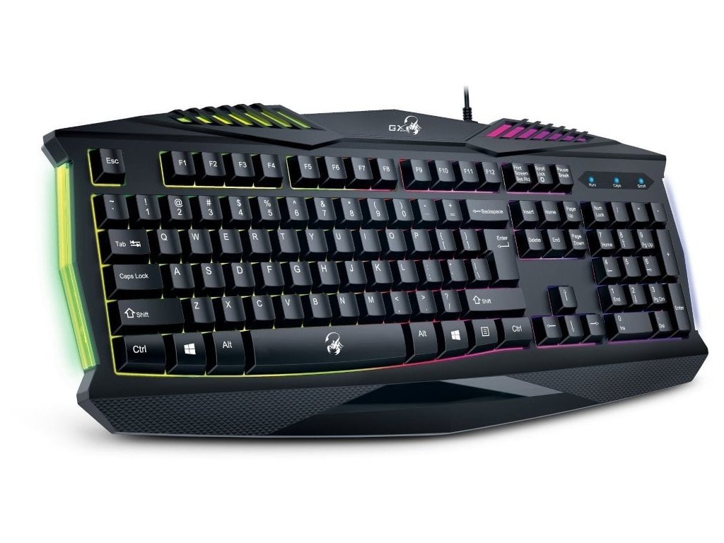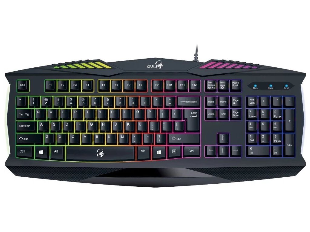 Kvalitní herní klávesnice GENIUS GX GAMING Scorpion K220 je vhodná pro každého hráče. Pro příjemné používání má klávesnice zvětšený mezerník, dlouhé klávesy Shift a dvouřádkový Enter. Klávesy jsou navrženy tak, aby vydrželi až 2 milióny úderů. Nabízí odolnost proti polití, takže se nemusíte bát o její zničení. Zaujme také regulovatelným barevným podsvícením.