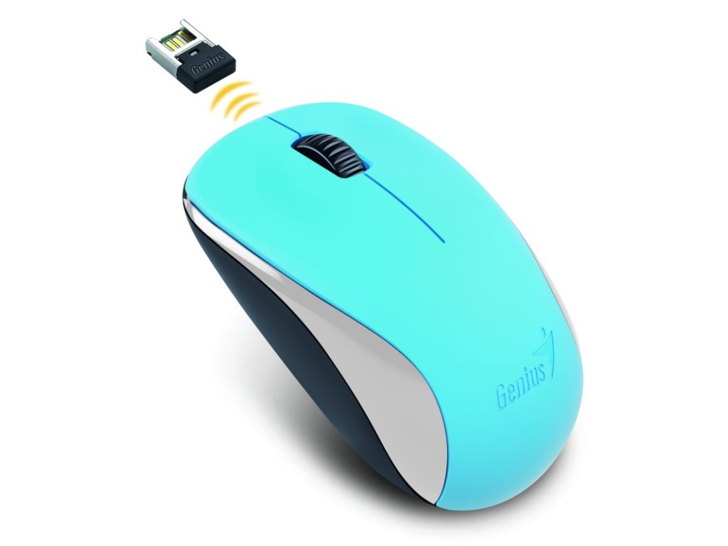 Bezdrátová myš pro práci s PC i notebookem, citlivý snímač Blue-Eye s rozlišením 1200 dpi, 2tlačítka + rolovací kolečko, bezdrátový radiový přenos na frekvenci 2,4GHz,