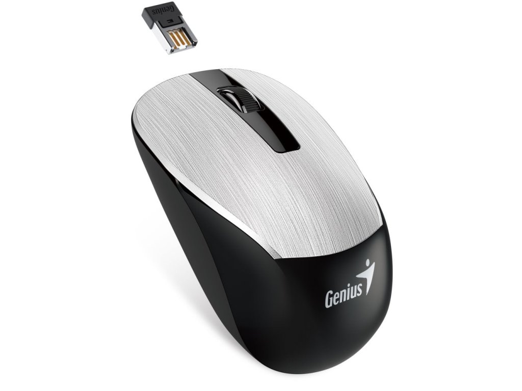 Myš, bezdrátová, optická, 1600dpi, 3 tlačítka, Blue-Eye senzor, USB, stříbrná