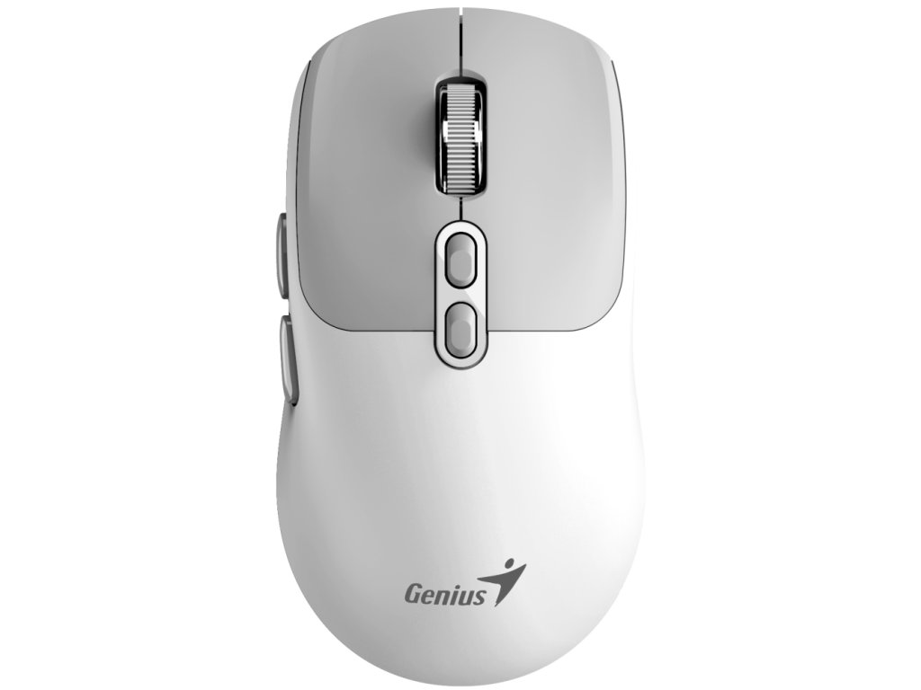 Myš, bezdrátová, optická, 1600DPI, 7 tlačítek, tichá, Copilot, 2,4GHz, Bluetooth 5.3, bílo-šedá