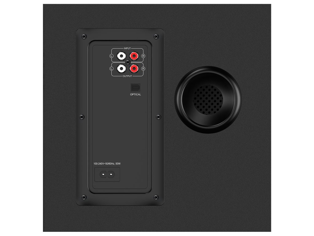 Multimediální reproduktorový systém v konfiguraci 2.1 s celkovým výkonem 50 W. 6,5" subwoofer nabízí dokonale hluboké basy a dva 3" satelity zajistí vysoké vokály. Ovládání reproduktorů je možné pomocí dálkového ovládání. Připojení je možné drátově skrze RCA konektory, optický audio vstup, nebo bezdrátově pomocí Bluetooth 5.3.